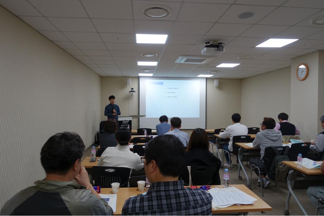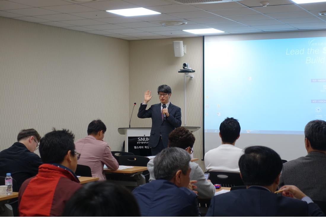 [ 2018년 경기도 공공의료기관 행정직 역량강화교육1]이 분당서울대학교병원 헬스케어혁신파크 제 5세미나실에서 개최되었습니다. 경기도내 의료원 및 요양병원, 시립병원 행정직 선생님등 20명이 참가하여 병원회계, 예산, 원가관리, 원가계산방법등 과정을 이수하였으며, 이번이 1차과정으로 앞으로 2회(4/30, 5/25) 추가로 진행 될예정입니다.